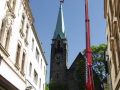 der Auftrag: Reparatur und Montage des Wetterhahnes an der Lutherkirche in Wetter/Ruhr nach Orkan Kyrill, mit der höchsten Arbeitsbühne der Welt. Mai 2007........